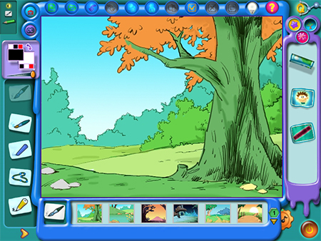 方便的倒色、克隆等工具可快速创作作品,变形工具可以让画面上的人和动物变得夸张有趣,增强小朋友的学习兴趣。