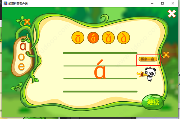 都说家长是孩子们的启蒙老师,可是你也不知道该怎么教孩子知识?那就交给熊猫拼音软件吧,这是一款专门为2-9岁的小朋友准备的儿童学拼音游戏,详细的为孩子们提供了声母、韵母、声调、十六个整体音节等海量知识,并为了提升孩子们的学习兴趣,还特将其打造为儿童们最喜爱的卡通动画,并会由我们的国宝熊猫角色带领孩子学习。在熊猫拼音软件中,主要是以闯关的方式来进行教学,因此,进入软件即可查看到一张大大的探险地图,会以探险寻宝为故事背景,将汉语拼音与14关探险闯关游戏,十分有趣,轻轻松松拜托了传统教学的枯燥,更好的提升孩子的学习欲望。