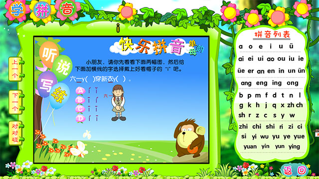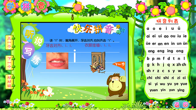 6、学习训练中,有大量妙趣横生的动画,生动活泼的图文讲解、纯正的中英文真人发音、益智与动手练习始终贯穿其中。