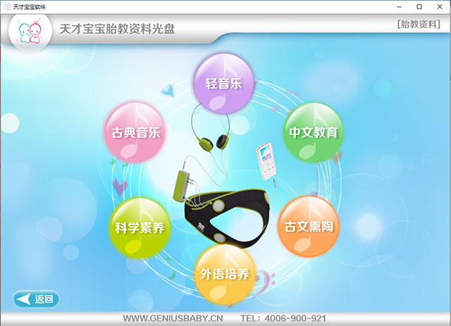 3、独特的胎教内容分类:分为六大类型,分别是:古典音乐、轻音乐、外语培养、科学素养、中文教育、古文熏陶,可以让准妈妈挑选喜欢的内容愉快胎教。