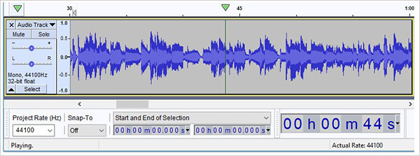 当“ Audacity”不是“播放”或“正在录制”时,它将显示当前光标位置或当前选择的开始(如果存在)。