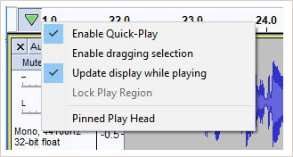 将播放和录制磁头从其默认未固定位置切换到时间轴上的固定位置的机制已更改。这样做是为了防止用户意外打开固定的头部,然后又不知道如何还原为默认的未固定。固定磁头后,磁头将保持静止,并且波形将随着播放或录制音频而移动。