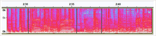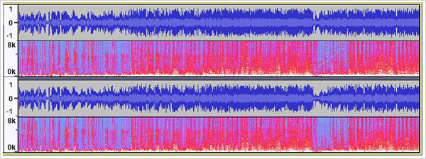 -频谱图显示频率。例如,在人声中,您可以看到元音的声音随时间变化。当播放另一种声音时,新声音的开始通常会在声谱图中更清晰地显示出来。
