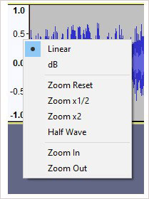右键单击“垂直比例”将弹出一个下拉菜单,可在“ 线性波形” (默认)视图和“ 波形dB”视图之间进行切换: