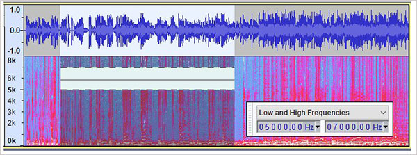 该谱删除效果作用于光谱选择从音频中删除的光谱选择。