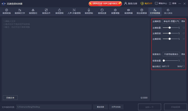 自由输出音频格式,如MP3、WAV等