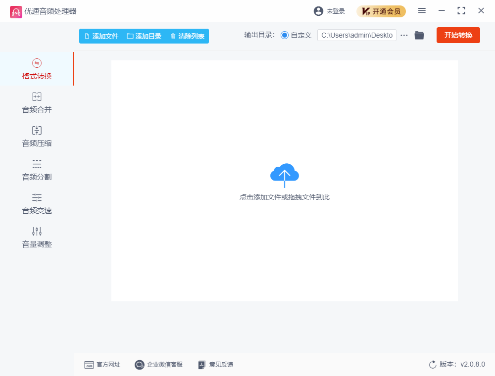 软件的核心功能包括音频格式转换、合并、压缩和分割,几乎涵盖了日常音频处理的所有需求。尤其是在格式转换方面,虽然其他类似软件可能支持更多格式,但优速的优势在于操作简便,所有功能都支持拖拽操作,并且输出目录可以自定义,极大提升了工作效率。