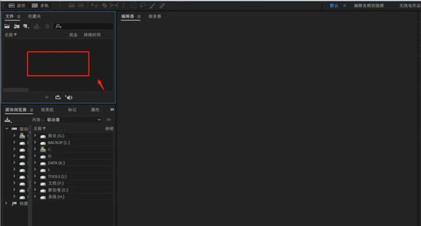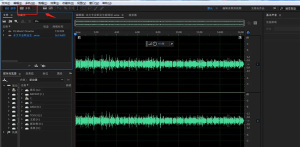 2、音频文件导入后,点击引入工具栏下方的“多轨”,创建一个多轨会话。