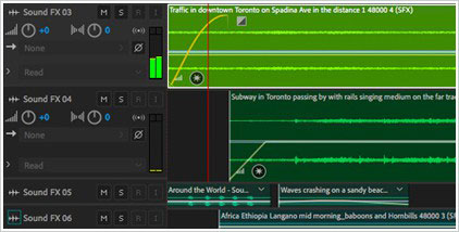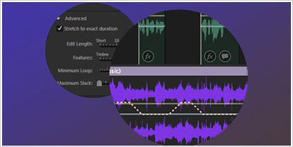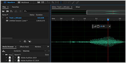 使用可自定义的控件查找声音。使用Multitrack编辑器制作分层的合成文件,或使用Waveform编辑器调整音频振幅。