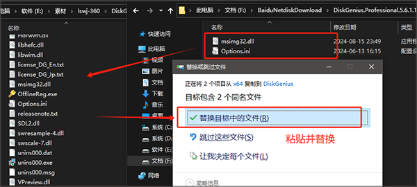 3、打开“crack”文件夹根据自己电脑的运行环境,将破解补丁拖入diskgenius安装目录中