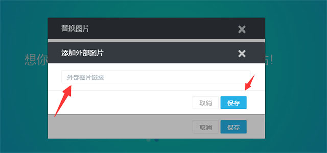 点击图中的“添加外部图片”按钮,系统将弹出填写外部图片链接地址的操作界面
