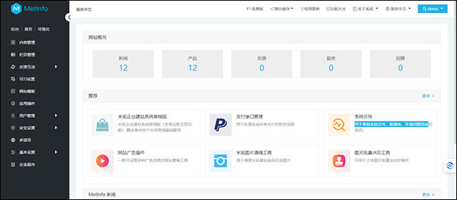 这篇文章主要介绍了MetInfo官方版是一款开源的企业网站管理系统,支持电脑、手机、微信公众号等多种入口,操作简单方便。用户可以通过可视化后台轻松管理文字、图片等内容,实现多平台同步更新。软件功能强大,包括SEO优化、多语言支持、响应式设计、丰富的模板库以及强大的安全机制等。文章还详细介绍了如何修改文字和图片,并提供了技术支持和免费在线升级服务。总体来看,这是一款适合中小企业的建站工具,操作简单且功能全面,非常适合非技术人员使用。个人觉得对于想要快速搭建企业网站的人来说,MetInfo确实是一个不错的选择,特别是其永久免费的特点让它更具吸引力。