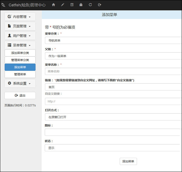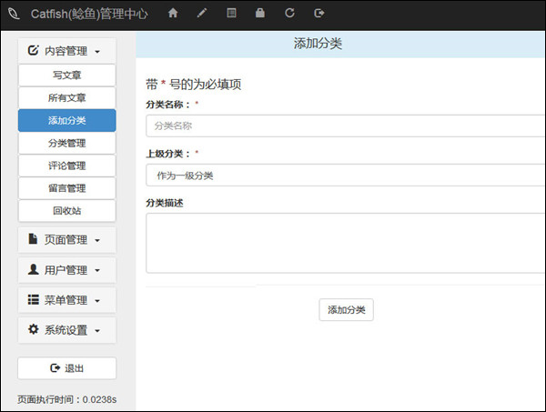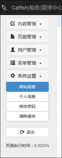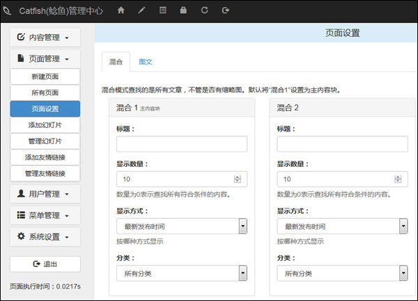 (注:页面设置功能是Catfish CMS系统的特有功能,Catfish Blog系统不需要该功能)