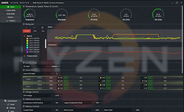 精确的硬件状态监测至关重要。为此,AMD Ryzen Master 通过实时监控以及每颗核心的时钟频率及温度直方图让您随时了解 CPU 状况,包括平均值和峰值读数。