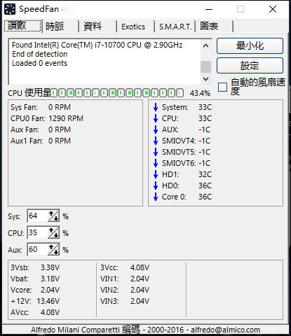 2、第一次启动SpeedFan软件,SpeedFan会自动检测电脑的硬件情况