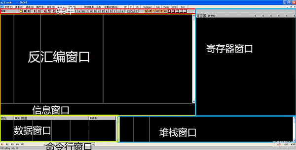 信息窗口:显示反汇编窗口中选中的第一个命令的参数及一些跳转目标地址、字串等。