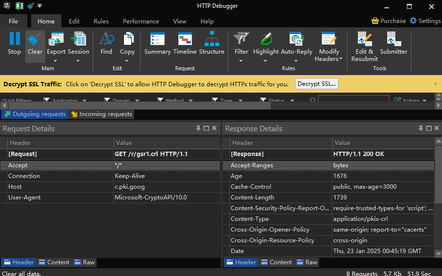 HTTP Debugger是一个无代理的HTTP嗅探器,具有干净的UI并且非常易于使用。不更改代理的浏览器配置。可以显示来自任何浏览器和JAVA / .NET应用程序的HTTP(s)流量。
