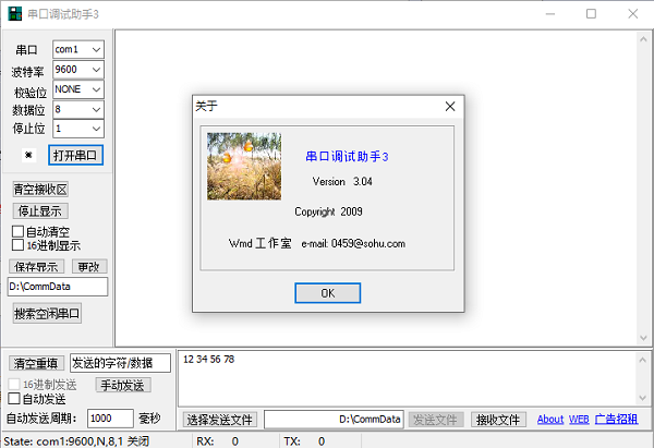 SComAssistant是一款很好而小巧的串口调试助手,支持常用的300-115200bps波特率,能设置校验、数据位和停止位,能以ASCII码或十六进制接收或发送任何数据或字符(包括中文),可以任意设定自动发送周期,并能将接收数据保存成文本文件,能发送任意大小的文本文件。