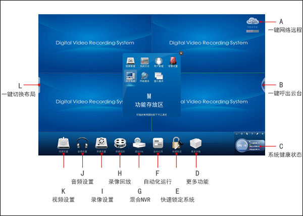 最让我觉得方便的是“一键呼出云台”和“混合NVR”功能,前者让远程控制更简单,后者解决了模拟监控与网络高清方案难以取舍的尴尬。安装教程也很详细,操作起来没有压力,软件默认密码123,适合刚接触监控的新手。