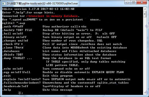 输入“.help”即可查看所有命令。详细的操作可以仔细看一下SQLite命用命令及语法,SQLite3支持标准SQL语言。