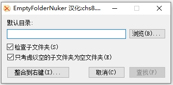 Empty Folder Nuker是一款界面友好的空文件夹清理工具,能有效清理计算机中的垃圾文件夹,节省电脑磁盘空间。操作简单,功能强大,允许部署简单的XCOPY样式,能批量删除空文件夹,可以在有需要的地方直接使用回收站工具删除残留文件夹,且支持右键集成Windows资源管理器中的任何文件夹,并找到其中的空文件夹,小巧、简单、实用,有兴趣的用户请下载体验。
