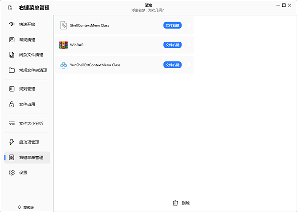 2、打开清浊桌面版就可以在软件左侧找到多个清理选项