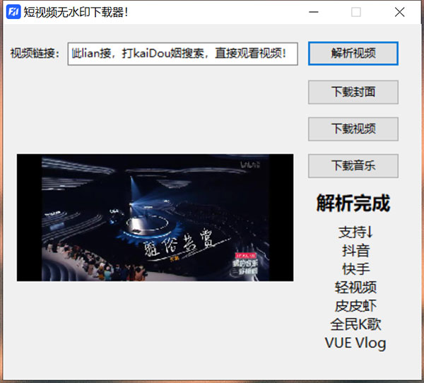 目前,短视频是非常火爆的,遇到喜欢的不少小伙伴们都会选择下载下来,可下载下来的短视频多多少少都是带有水印的,这可给小伙伴们带来了很大的困扰。所以今天小编要分享的是短视频无水印下载神器,能够支持解析下载抖音、快手、轻视频、皮皮虾、全民K歌、VUE VLOG这六大平台的短视频,可以帮助大家轻松搞定六大短视频平台。而且软件还支持封面、视频、音乐三种不同下载方式,全方面满足不同人群的需求,操作也十分简单,允许直接输入带文字的链接,进行解析,超级便捷。在下文,小编奉上了详细的使用图文教程,有需要的用户快来下载试试吧。