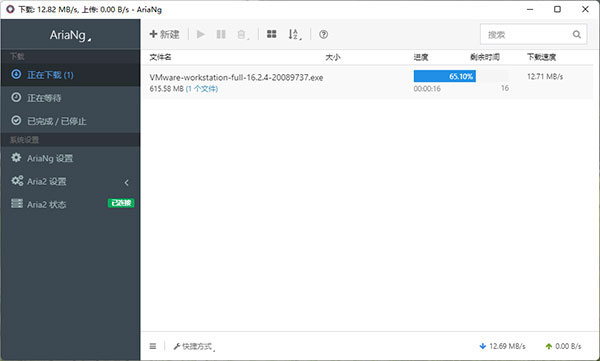 4、点完确定之后,它会将下载内容直接添加到AriaNgGUI中,耐心等待一会就会开始下载了