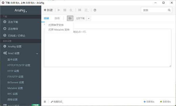 2、点击“新建”,然后点击文件夹图标,点击“打开种子文件”或“打开 Metalink文件”