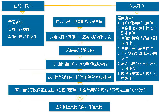 您可以凭您的有效身份证件至本公司各营业场所或IB营业部办理金融期货开户业务。具体流程如下: