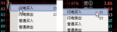 (2)组合窗口上右键点击,在弹出的菜单中选择闪电买入\闪电卖出,在盘口的交易价格上点击右键,在弹出窗口上选择闪电买入,或者闪电卖出: