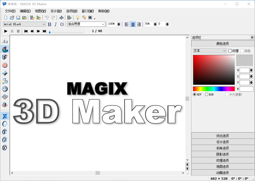 MAGIX 3D Maker是一轻量级图形设计工具,提供众多直观且实用的设计工具,能指定文字的颜色、字形、大小、及3D成型等级,用户不需要掌握传统3D软件的专业技巧,让设计师就可以最快速度为文字加上3D三维效果,可迅速入门并生成专业品质的3D动画,支持导入2D图像文件(WMF/EMF),支持导出为GIF/AVI/FLASH等格式,也支持直接生成屏保。同时令3D文字、物体的创建更为简单,用户不需要掌握传统3D软件的专业技巧,只需要在文字选项中添加想要制作的3D效果文字,再选择喜欢的3D效果后保存即可,有需要的快来下载。