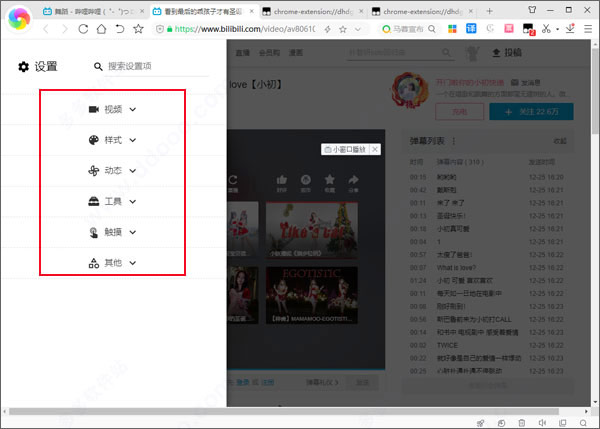 网页全屏强制保留弹幕栏