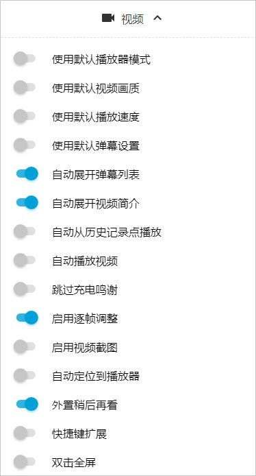 设定默认视频画质/播放器模式/播放速度