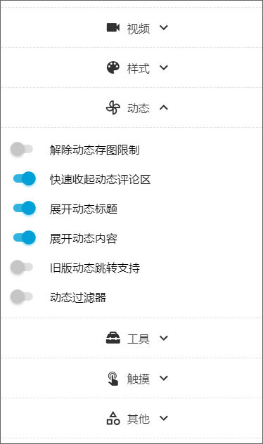 8、点击设置,支持视频,样式,动态,工具,触摸,其他等设置;