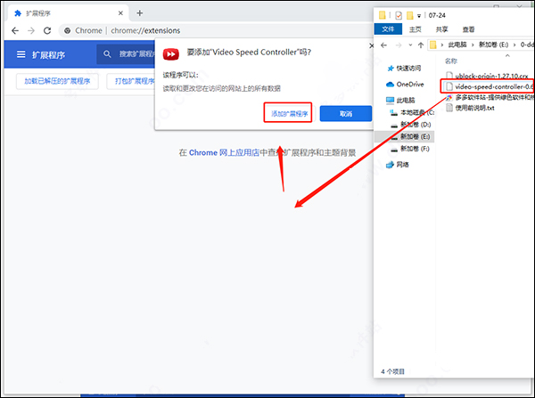 3、拖入已经下载好的crx扩展文件,添加扩展程序至浏览器;