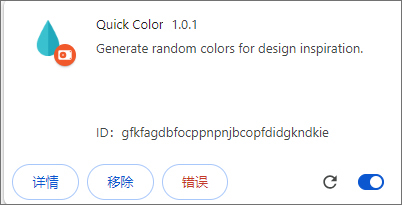 Quick Color是一款能为你随机生成一个颜色样式的chrome颜色随机生成器,功能与使用十分简单,点击插件窗口中的按钮即可随机生成一种颜色与该颜色的十六进制码,复制后即可使用与任何需要的地方,欢迎免费下载。