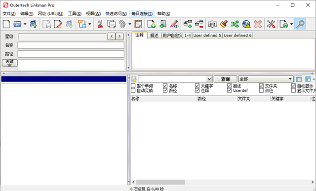 遵循通常的书签数据元素,如名称、路径、关键字、描述和评论,Linkman 为您提供了用户定义的书签数据。
