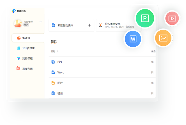 2、备课台:不仅仅是网盘,随时随地上传、创建、获取、使用多类型教学资源。