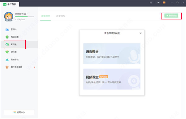 10、点击云课堂,可以创建语音课堂,以及视频课堂;