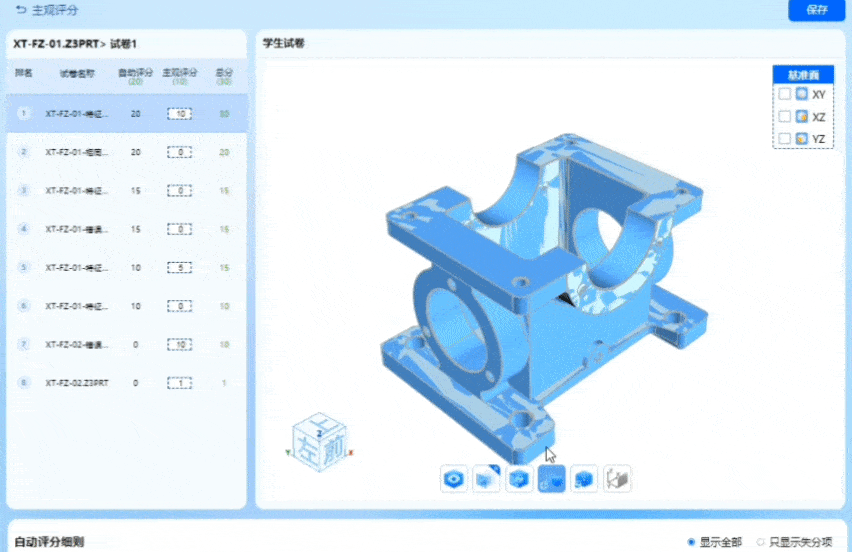 评分成绩在线审核,标准零件与学生试卷实时对比,详细解析评分细则。教师可重新审核自动评分细则,对照失分项详情,添加和编辑分数。实时全面掌握学生学习成果,调整教学策略,提高教学质量。