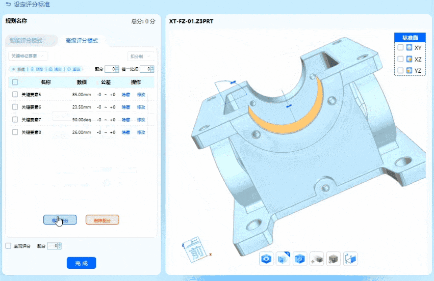 一键导入Z3PRT,IGES,IGS,STP格式的标准零件,自动识别零件特征并生成评分规则,一键批量自动评分,助力大赛场景,实现降本增效,优化资源配置。
