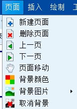 4、页面包括新建页面、删除页面、上一页、下一页、页面移动、背景颜色、背景图片、取消背景等选项。