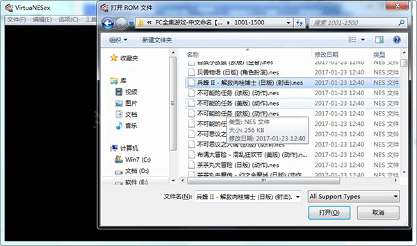 2、双击本站提供的fc游戏模拟器"VirtuaNESex.exe",无需安装,双击即可使用;