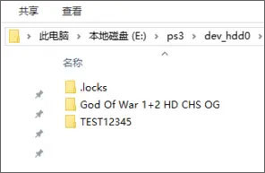 4、将god of war 1+2 HD CHS DG这个文件夹复制粘贴到以下目录去:PS3模拟器根目录-dev_hdd0-game;