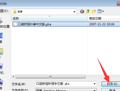 首先通过模拟器打开游戏,这里以口袋妖怪叶绿为例,其他也是一样这样改;