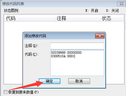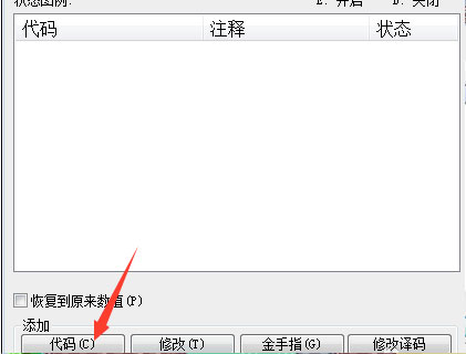 点击代码,在这里以“02039888:00000000”免费购物和“0300510a:0001”大师球为例,其他金手指可以在网上搜到,点击“代码”;