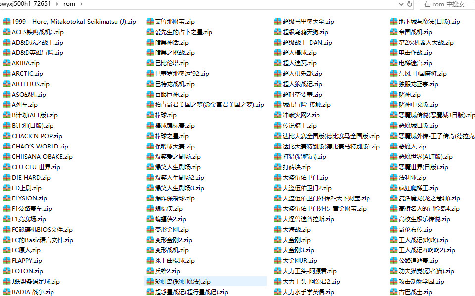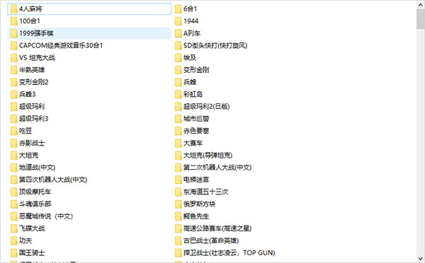 超级玛丽,魂斗罗,忍者龙剑传1&2&3代,忍者神龟1&2&3代,吞食天地1&2,赌神中文版,恶魔城,恶魔城外传-王子传奇,高桥名人的冒险岛1&2&3&4,花式撞球,古巴战士,假面忍者花丸中文版,龙珠2-大魔王复活,龙珠3-悟空传,龙珠Z2-激斗弗利撒,龙珠Z3-烈战人造人,龙珠Z-激斗天下一武道会,龙珠Z-强袭塞亚人,龙珠Z外传-塞亚人灭绝计划,龙珠-神龙之迷,绿色兵团,赤色要塞,洛克人1&2&3&4&5,热血高校(全部系列),忍者蛙与双截龙,双截龙1&2&3&4,水浒传-天命之誓(中文),脱狱2,脱狱2,战场之狼,兵蜂,捍卫战士1&2,马戏团,魔界村,怒1&2&3代,七宝奇谋,沙罗曼蛇1&2&3代,响尾蛇,炸弹人等等