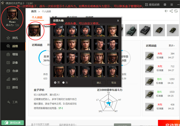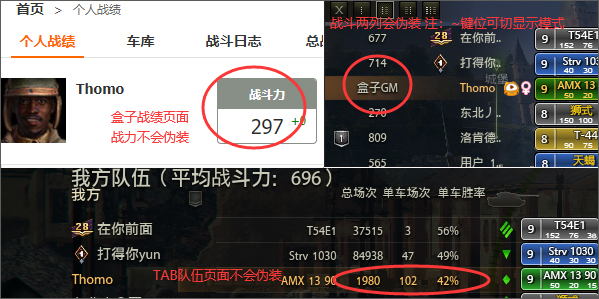 战力伪装可以通过偶游坦克世界盒子PC版界面修改自定义战斗力,并且在游戏中显示(并不会修改真实战斗力)。