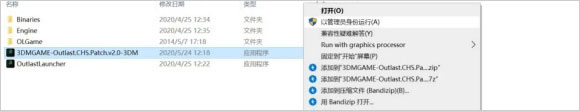3、单击鼠标右键汉化补丁。选择“以管理员身份运行”;